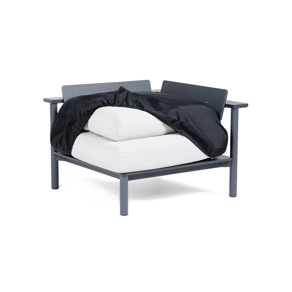When the weather turns, these made in the USA, marine grade covers will protect your cushions from the elements. Sunbrella’s Sur Last material is highly water resistant, as well as mold/mildew resistant. This coupled with high UV resistance and the ability to toss in the wash makes for a low maintenance, care-free solution for extending the life of your Aurora cushions. Lay the backrest cushions down over the seat and cover it all with this form fitting cover with elastic skirt, keeping everything secure and clean until fairer weather returns.