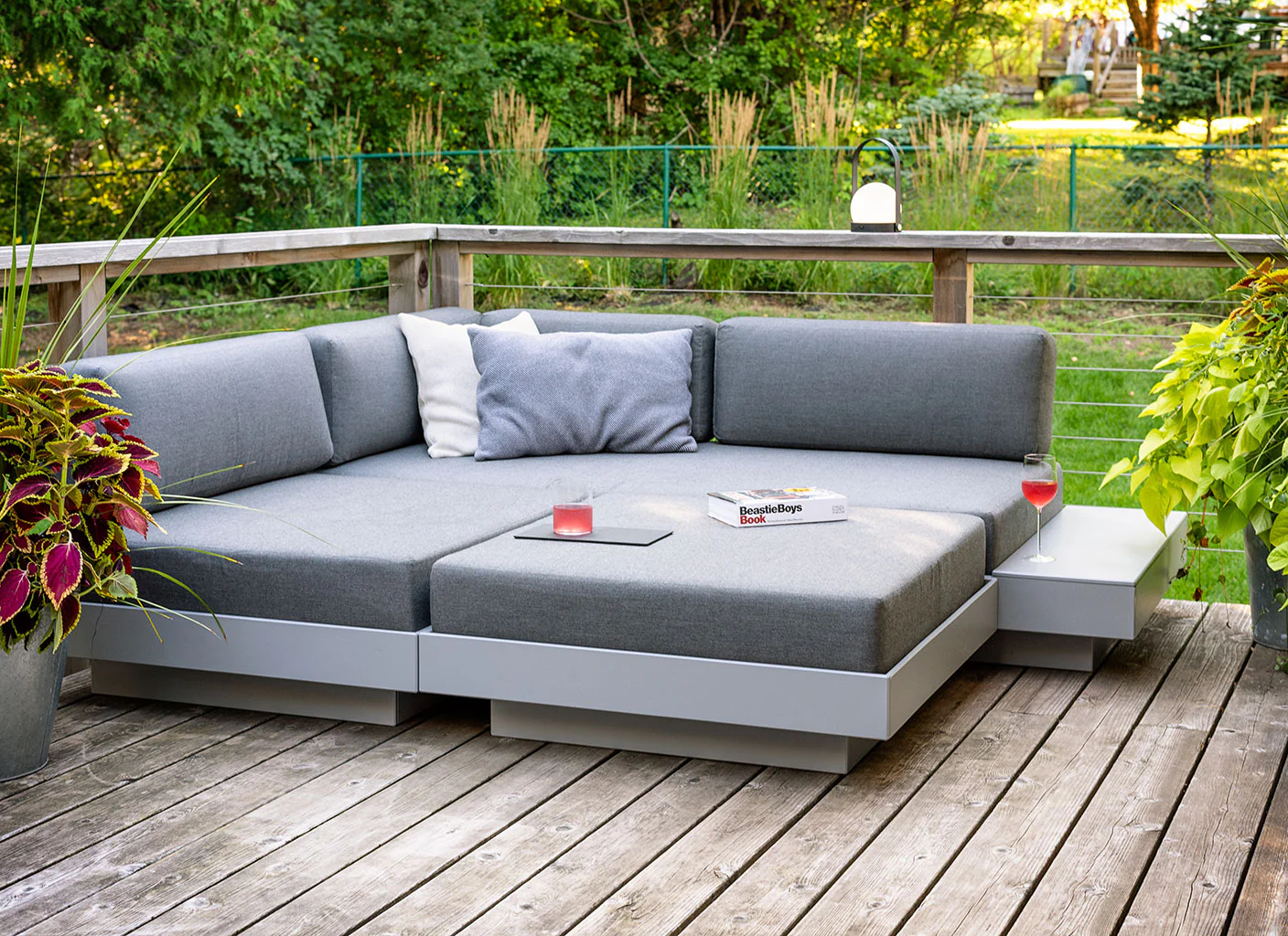 Sink in and relax with Platform One’s intentionally deep seating and durable Sunbrella fabric cushion, with water repellant cushion core. The base incorporates vertical seat supports for extra durability and flow through of water in inclement weather. Pair any of Platform One’s well-appointed seating options with this Ottoman for a place to kick your feet up, act as an impromptu cocktail table, or extend your Lounge Chair for some laid-back lollygagging. Modern meets lazy.