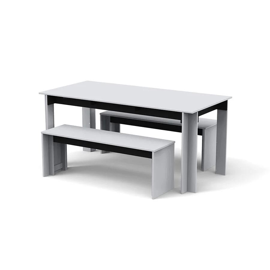 Part of the Salmela Collection, this modern picnic table was designed by Duluth architect David Salmela. The Hall Outdoor Dining Table is a clean and sculptural take on outdoor dining tables. A black Richlite frame beneath the table adds structure and contrast to the planes of the legs and top. The Hall Outdoor Dining Bench or the Emin Outdoor Dining Chair are designed as a complement to the table's clean geometric form.